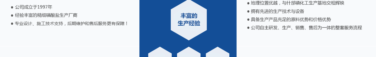本公司位于四川省綿竹市漢旺鎮,是自1997年成立以來至今,已發(fā)展成為四川生產經驗豐富的精細磷酸鹽系列產品專業(yè)生產廠家,地理位置優(yōu)越,毗鄰四川新市和拱星工業(yè)園區,與什邡磷化工生產基地交相輝映。主要生產產品有:磷酸二氫鉀、酸式磷酸鉀、磷酸氫二鉀、磷酸脲、磷酸二氫鈉、磷酸氫二鈉、磷酸三鈉、磷酸二氫銨、磷酸氫二銨等系列磷酸鹽產品。